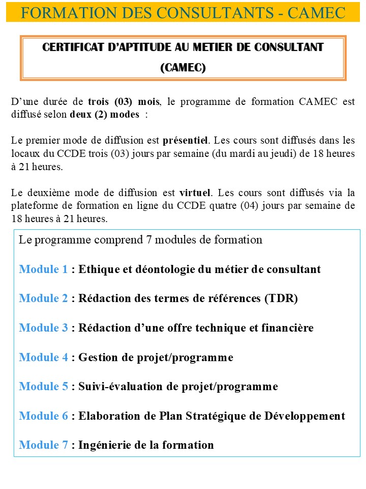 FORMATION DES CONSULTANTS - CAMEC