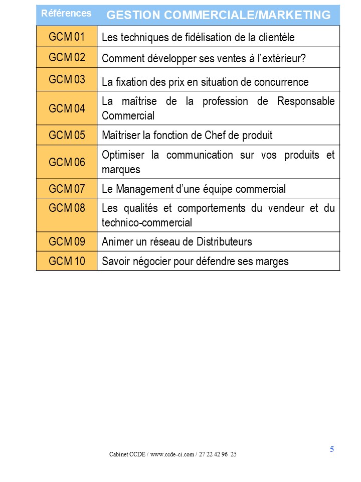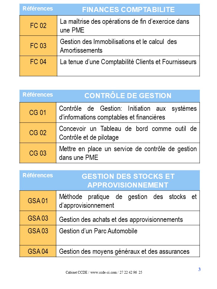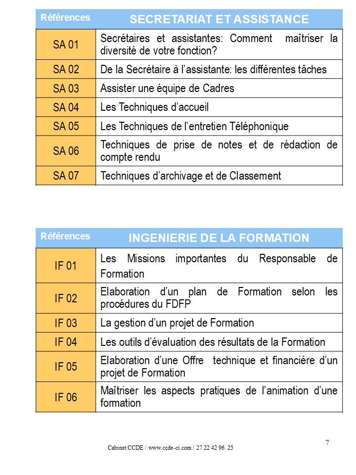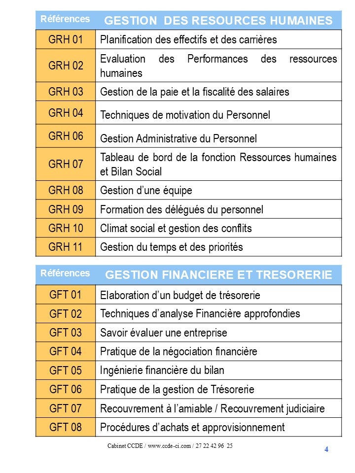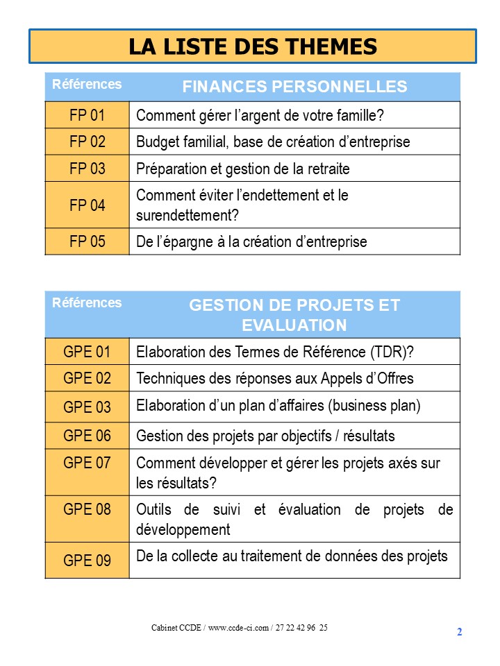 LA LISTE DES THEMES DE FORMATION